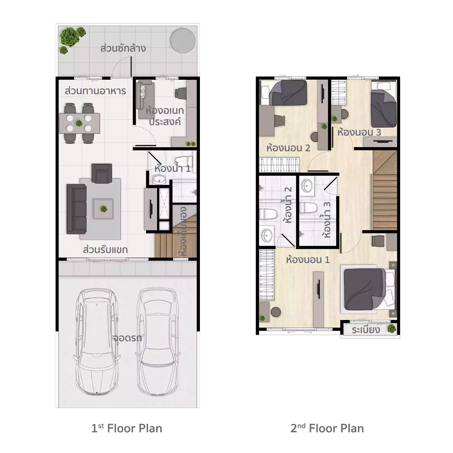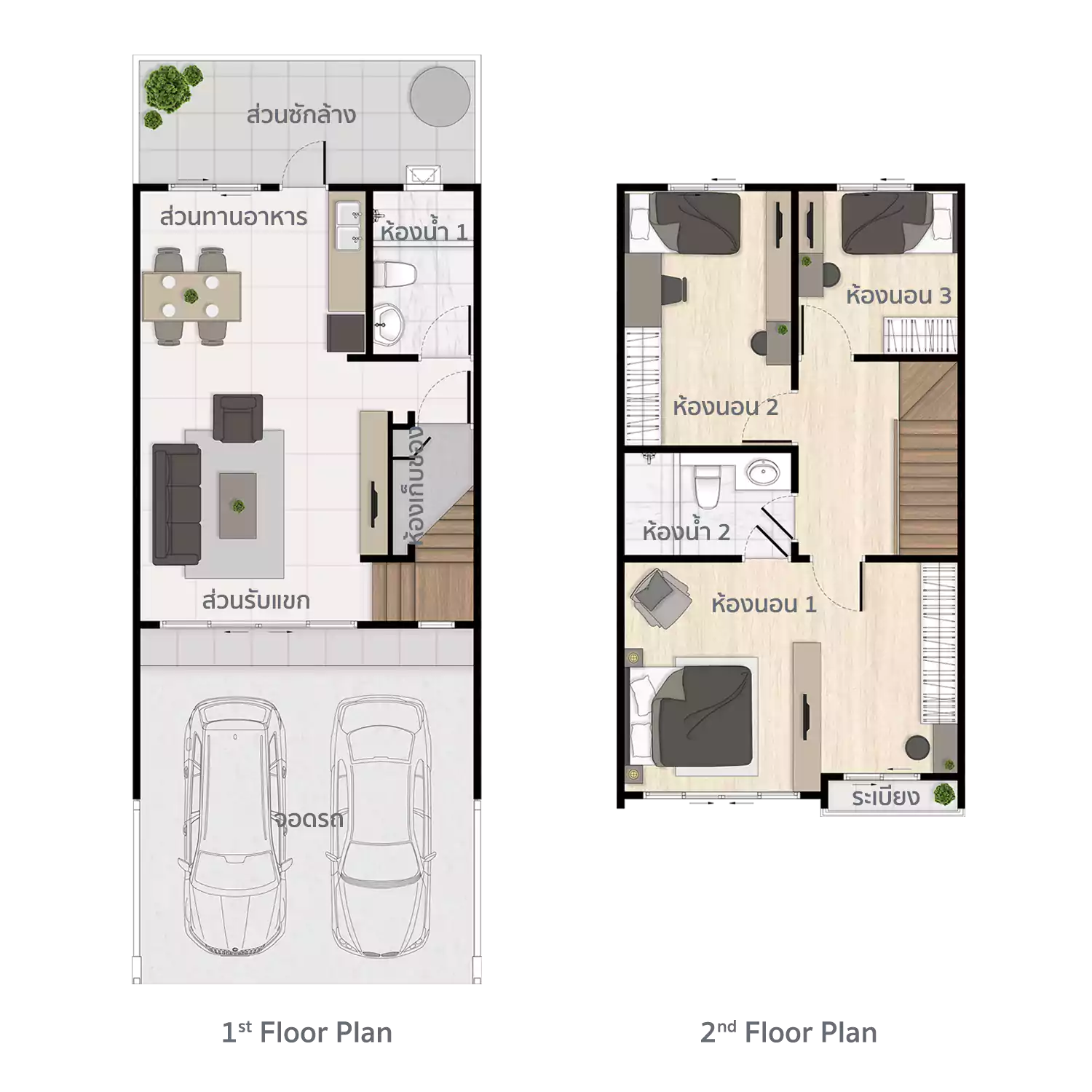 พื้นที่ใช้สอย 124 ตารางเมตร | หน้ากว้าง 5.5 เมตร