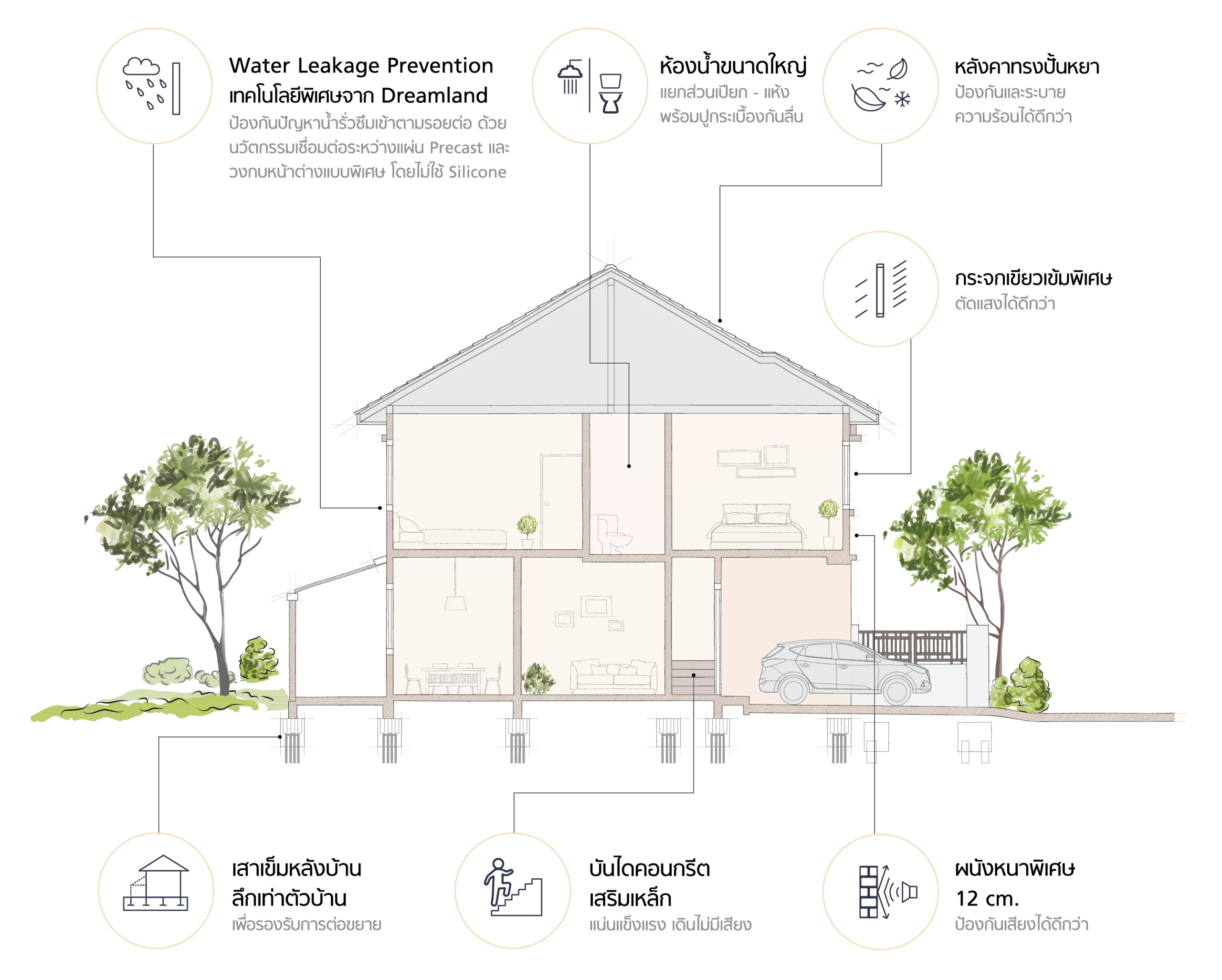 ความตั้งใจของ Dreamland Property คือ การสร้างบ้านแบบจริงใจ เพื่อมอบบ้านที่มีคุณภาพและอยู่สบายที่สุดให้กับคุณและครอบครัว เราใส่ใจในทุกรายละเอียดการก่อสร้าง การคัดสรรวัสดุ ให้คุณหมดกังวลกับปัญหาซ่อมแซมที่เกิดขึ้นในอนาคต