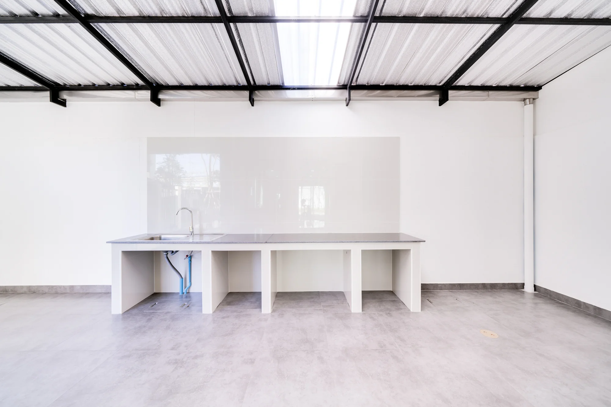 ◉ ฟรี! ครัวไทยหลังบ้าน ลงเสาเข็ม, ปูกระเบื้องพื้น, เคาน์เตอร์ครัว, ผนังเคาน์เตอร์พร้อมปูกระเบื้อง, หลังคา และรางน้ำฝนมูลค่า 150,000 บาท